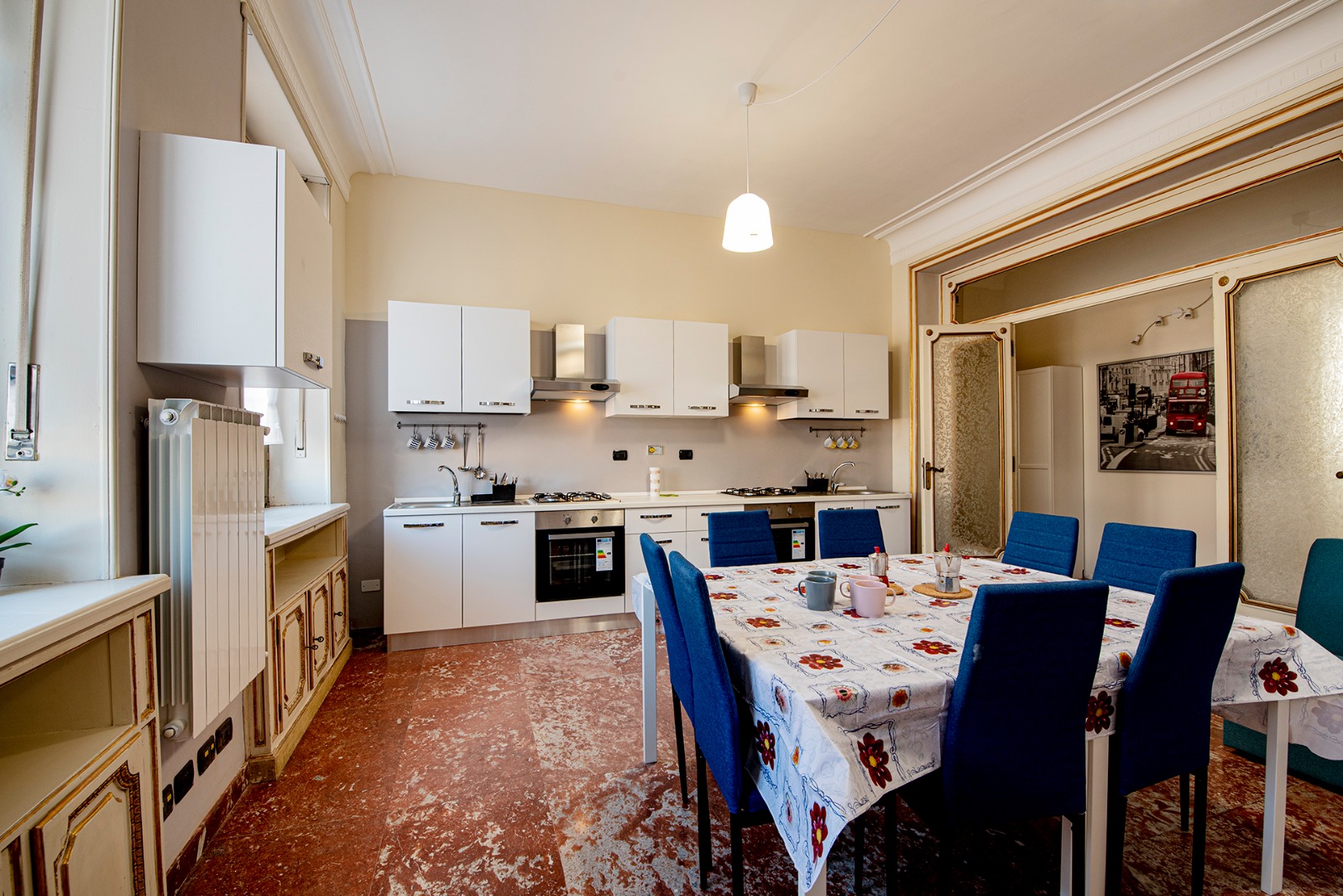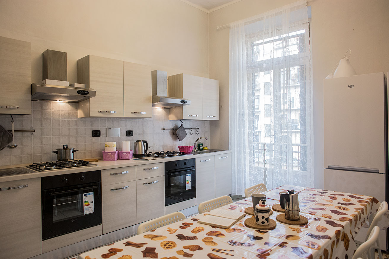 Enorme alloggio di 250 mq, con 8 stanze, 3 bagni e grande cucina adeguata all'utilizzo di 8 persone, sito in via Massena angolo C.so Vittorio.