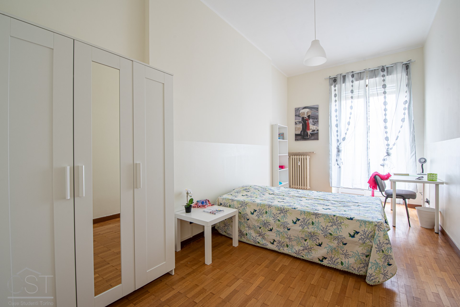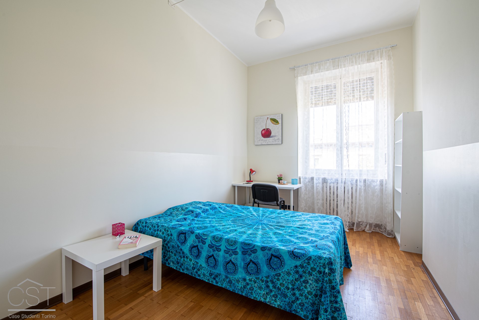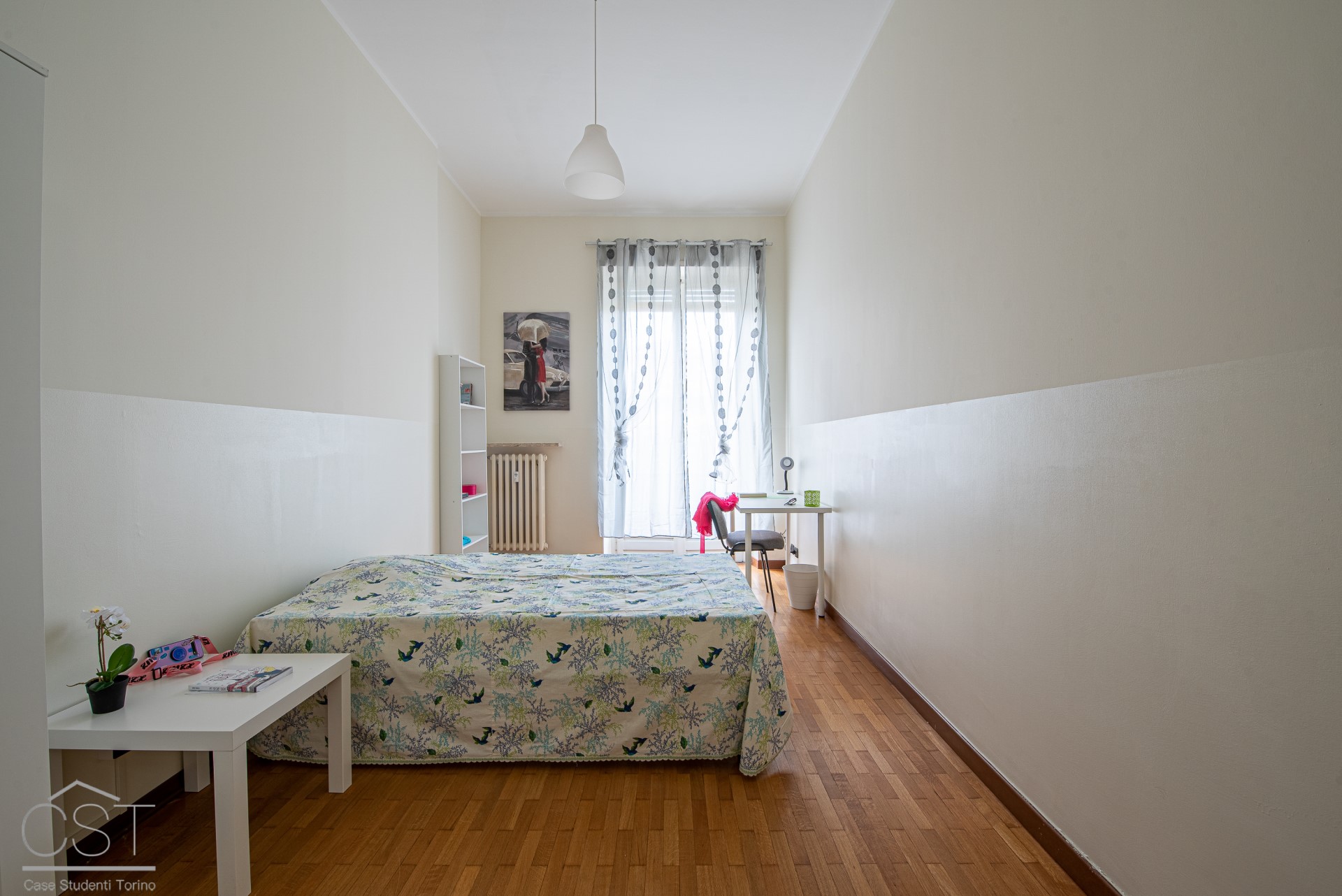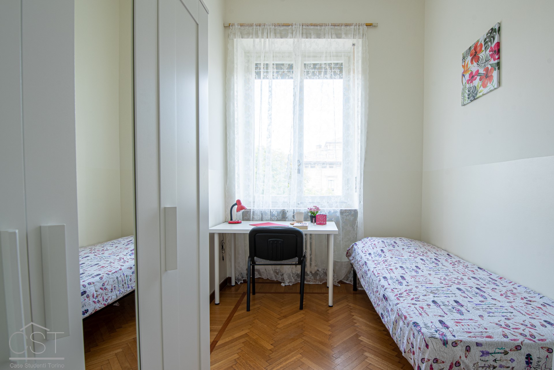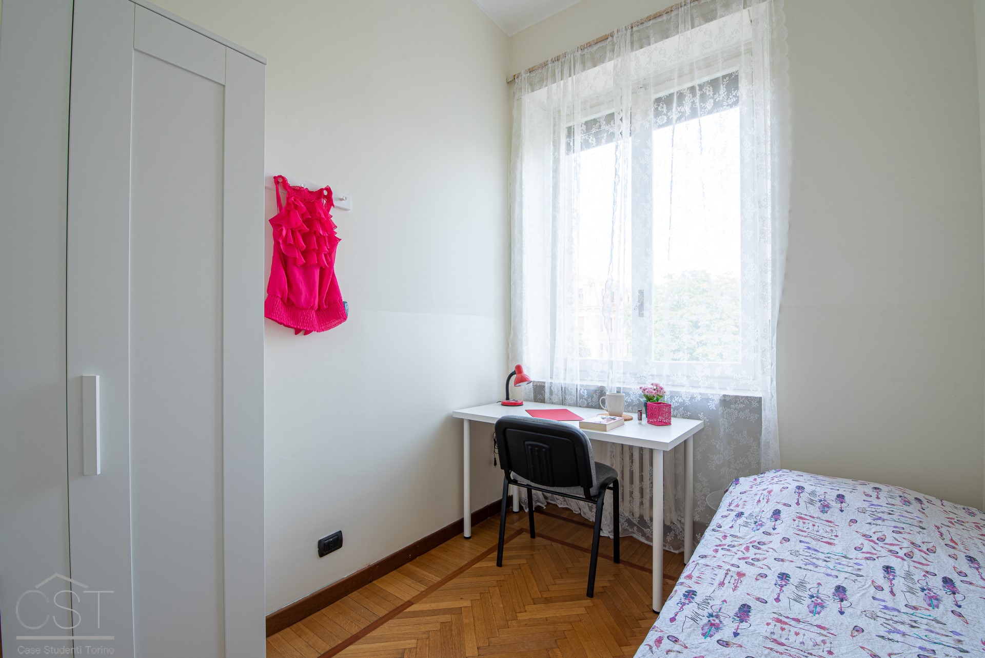 Singola luminosa e arredata di recente con letto a 1 piazza e mezza, scrivania, armadio, libreria, sedia, comodino e stendino. La camera dispone di balconcino privato. Il costo mensile è forfettario ed è comprensivo di: luce, gas, riscaldamento, internet, spese condominiali, immondizia e pulizia degli spazi comuni 1 volta al mese.
