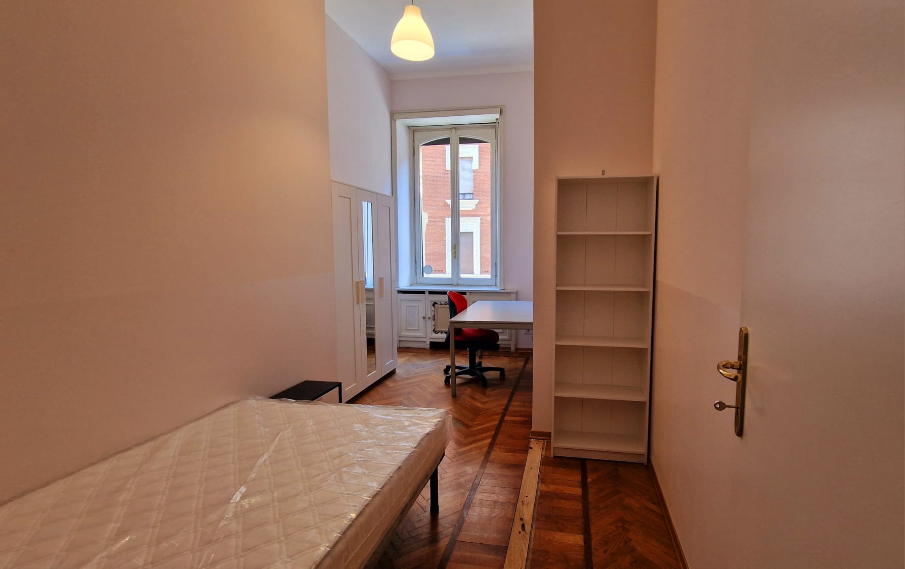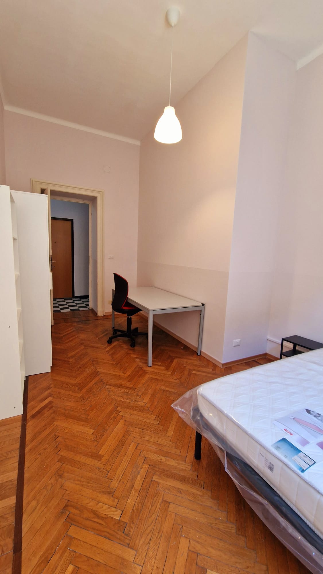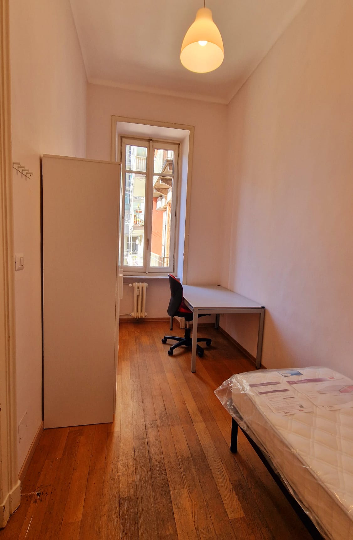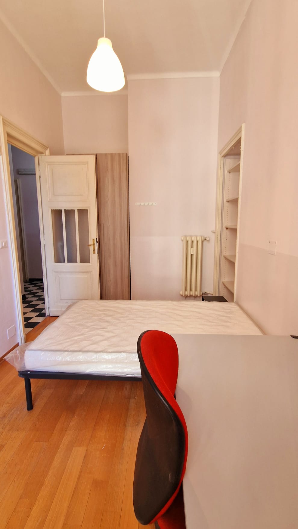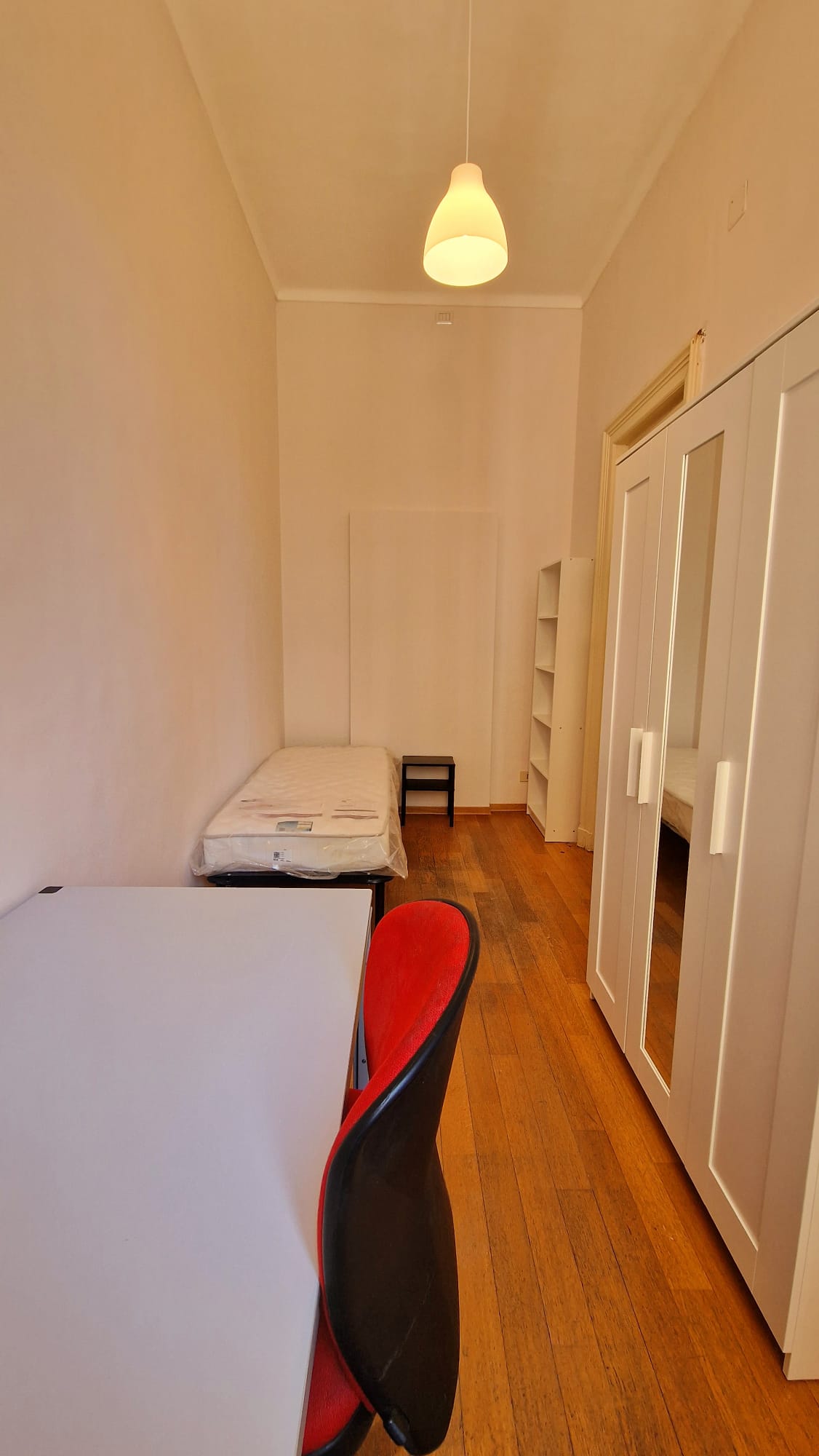 Bella singola luminosa arredata con letto da 1 piazza e mezza, comodino, scrivania, armadio, libreria, stendino e sedia. Il costo mensile è forfettario ed è comprensivo di: luce, gas, riscaldamento, internet, acqua, spese condominiali, tassa rifiuti e pulizie mensili degli spazi comuni.