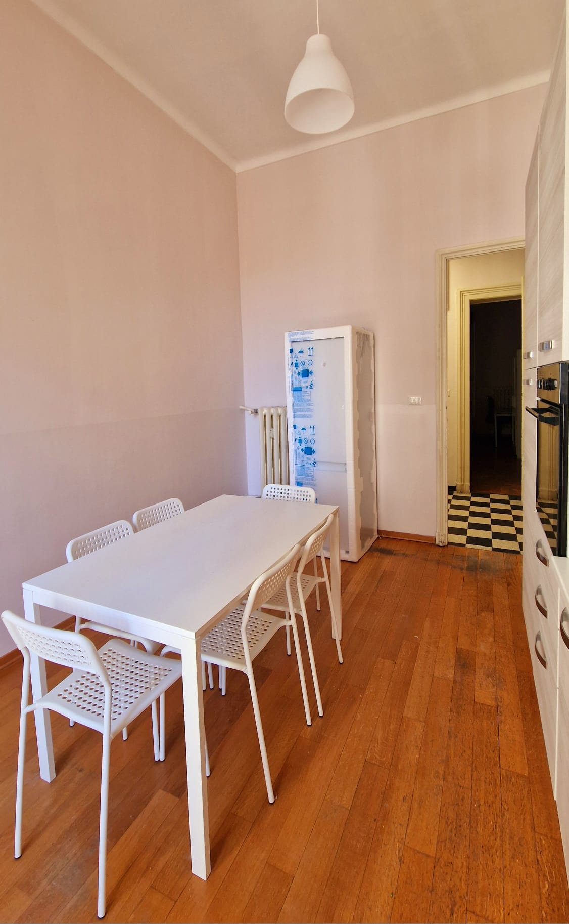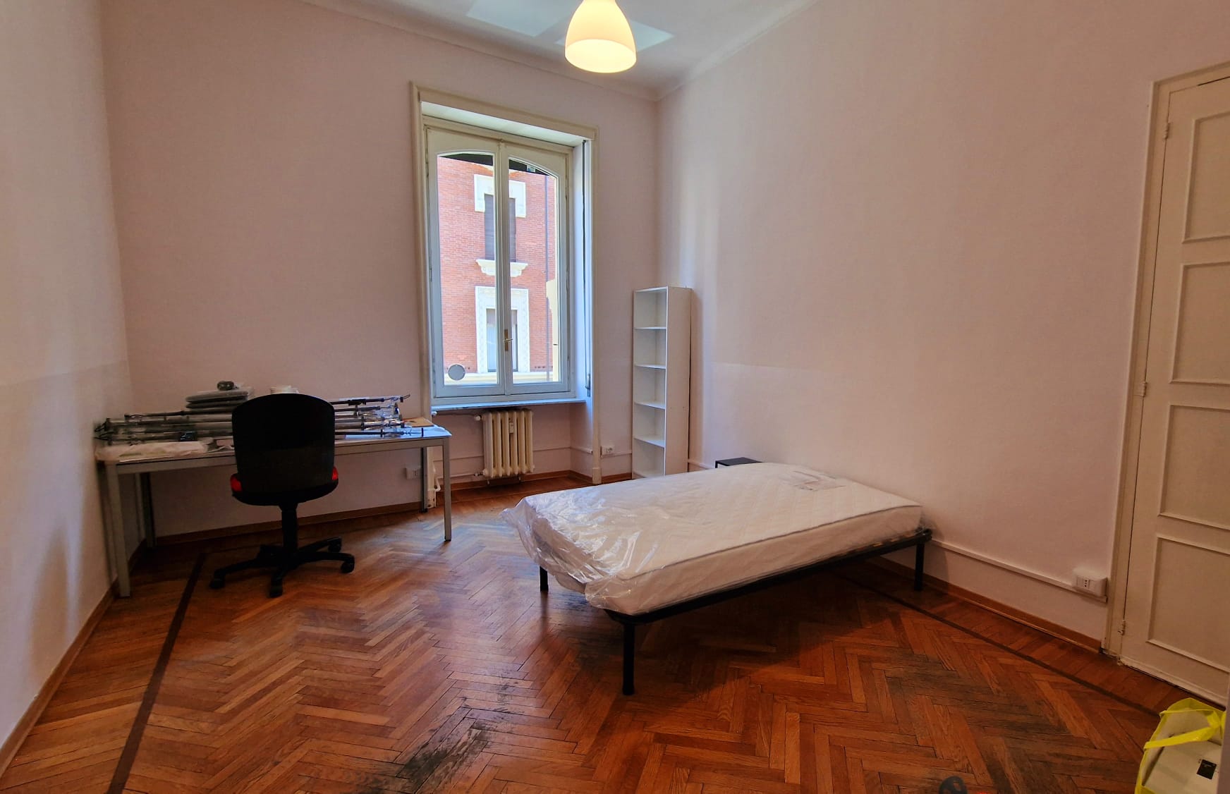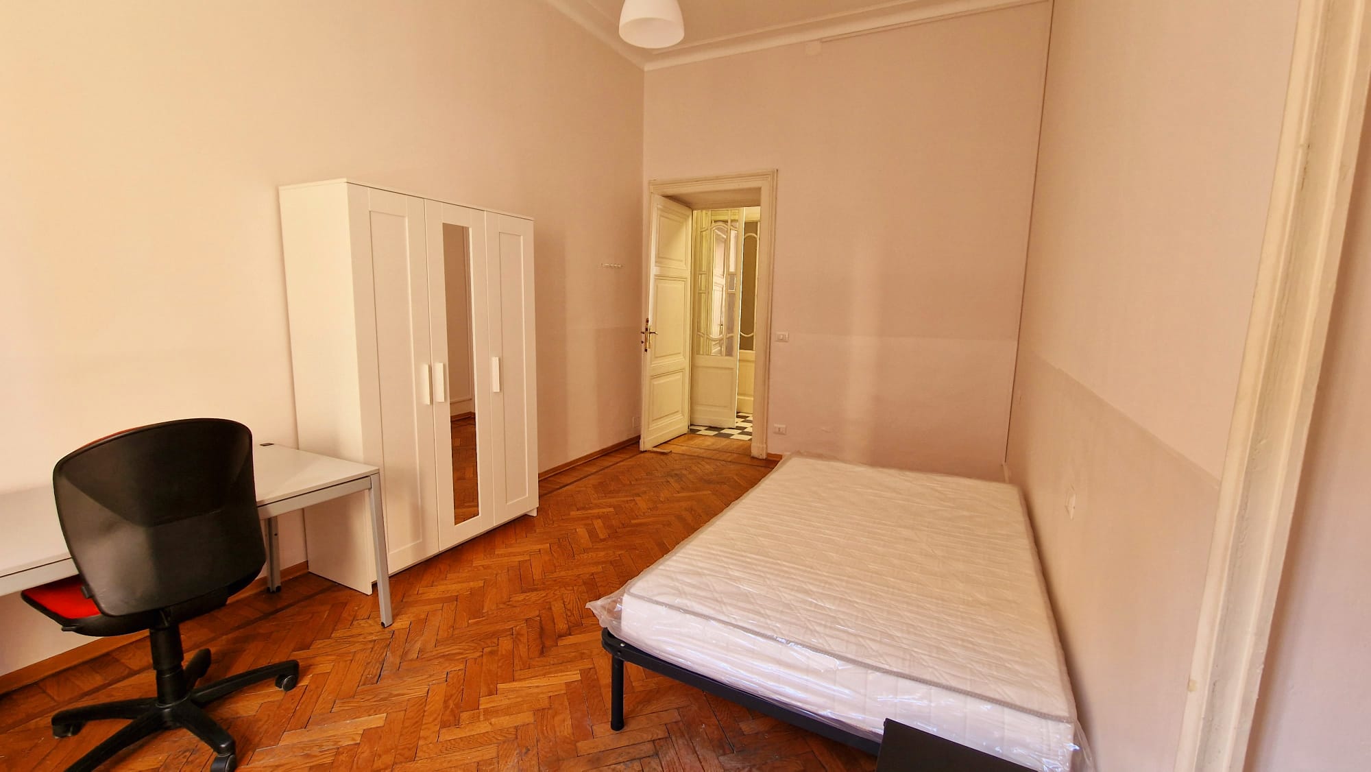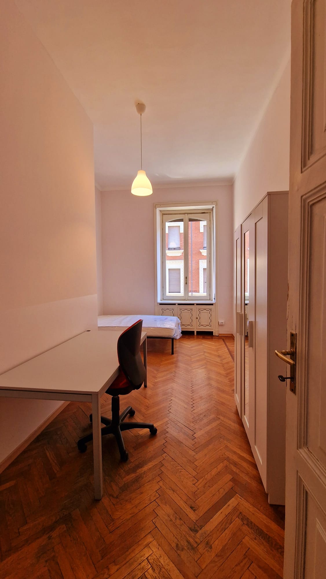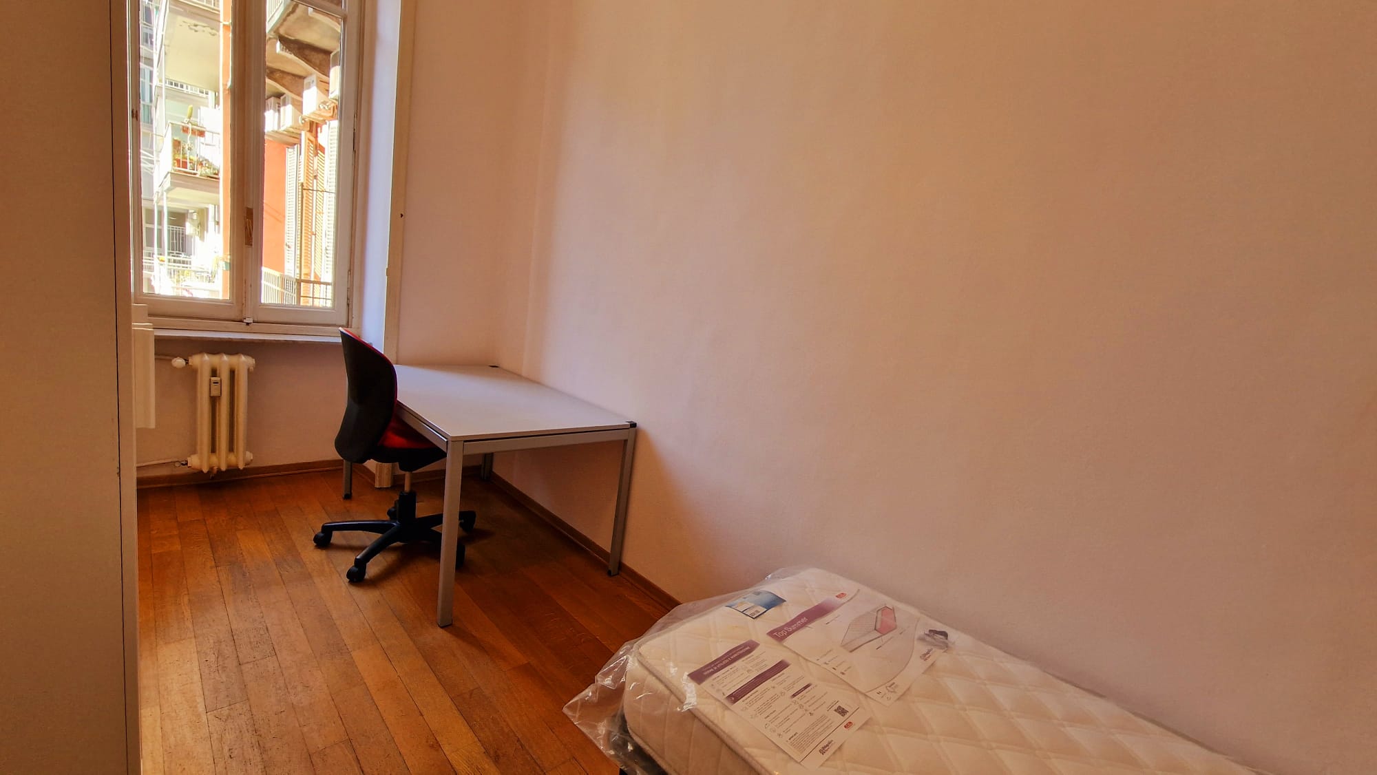 Bella singola luminosa arredata con letto da 1 piazza e mezza, comodino, scrivania, armadio, libreria, stendino e sedia. Il costo mensile è forfettario ed è comprensivo di: luce, gas, riscaldamento, internet, acqua, spese condominiali, tassa rifiuti e pulizie mensili degli spazi comuni.