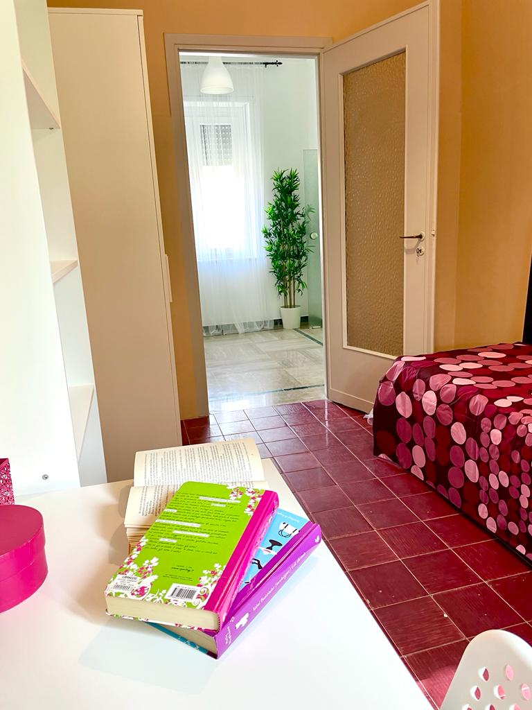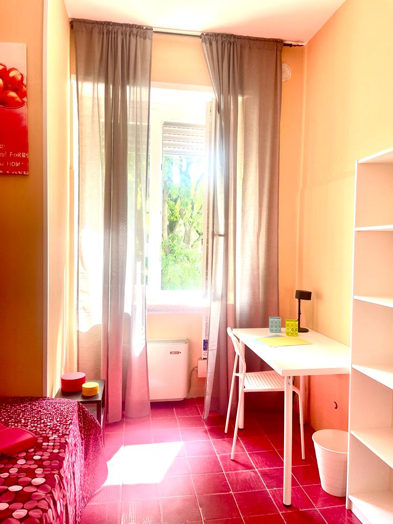 Graziosa singola luminosa arredata con letto singolo, comodino, scrivania, armadio, libreria, stendino e sedia. Il costo mensile è forfettario ed è comprensivo di: luce, gas, riscaldamento, internet, acqua, spese condominiali, tassa rifiuti e pulizie mensili degli spazi comuni.