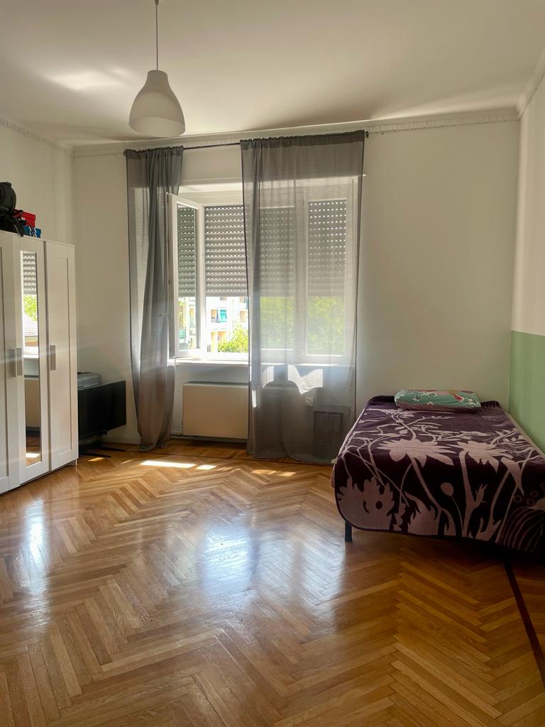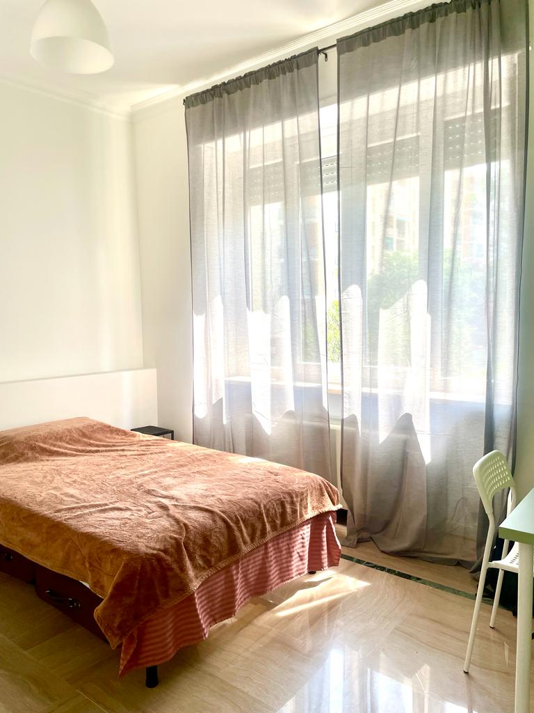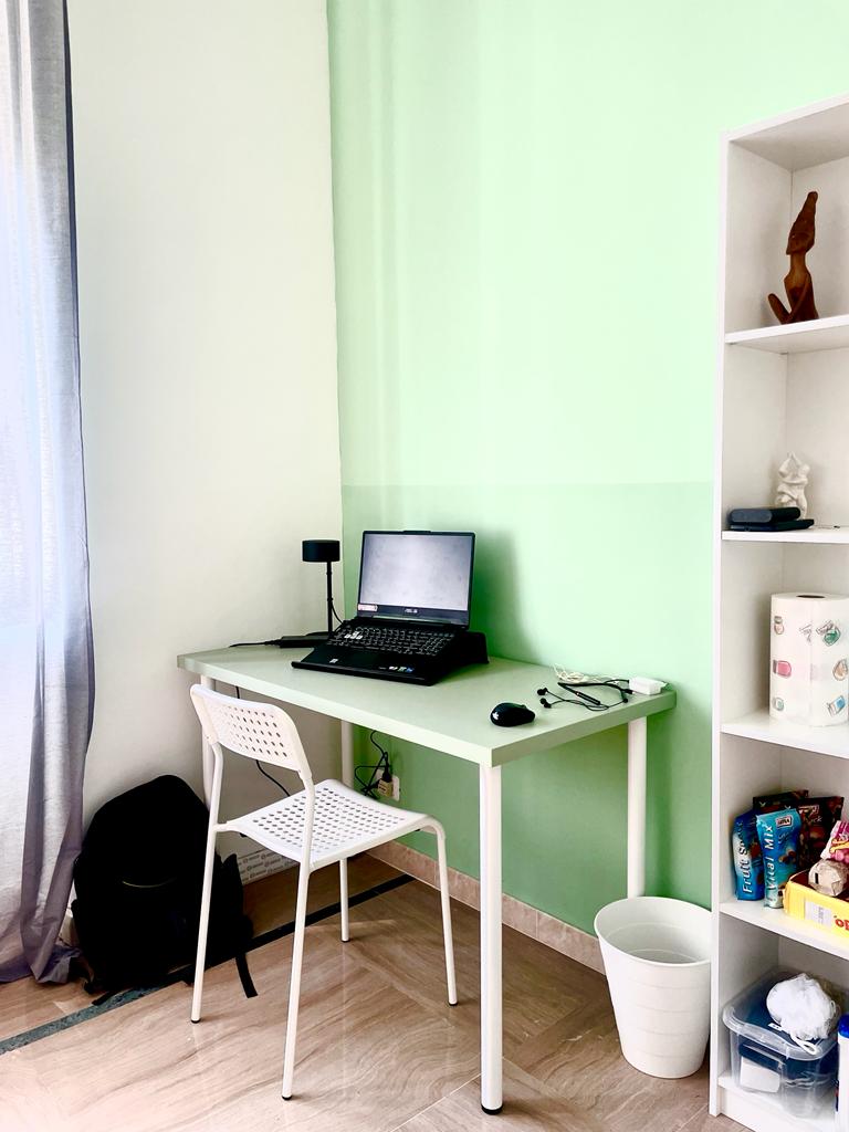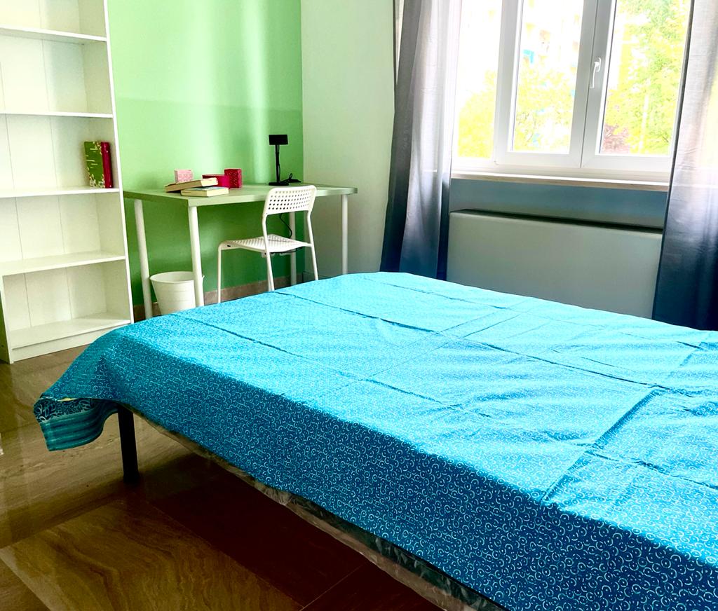 Bella singola luminosa arredata con letto da 1 piazza e mezza, comodino, scrivania, armadio, libreria, stendino e sedia. Il costo mensile è forfettario ed è comprensivo di: luce, gas, riscaldamento, internet, acqua, spese condominiali, tassa rifiuti e pulizie mensili degli spazi comuni.