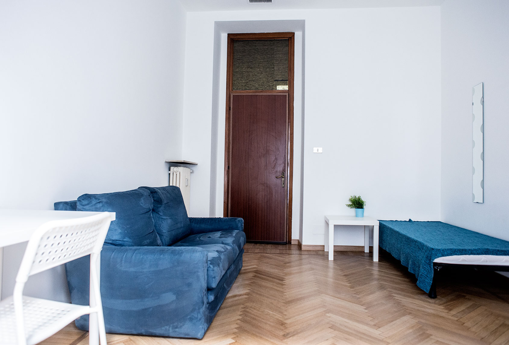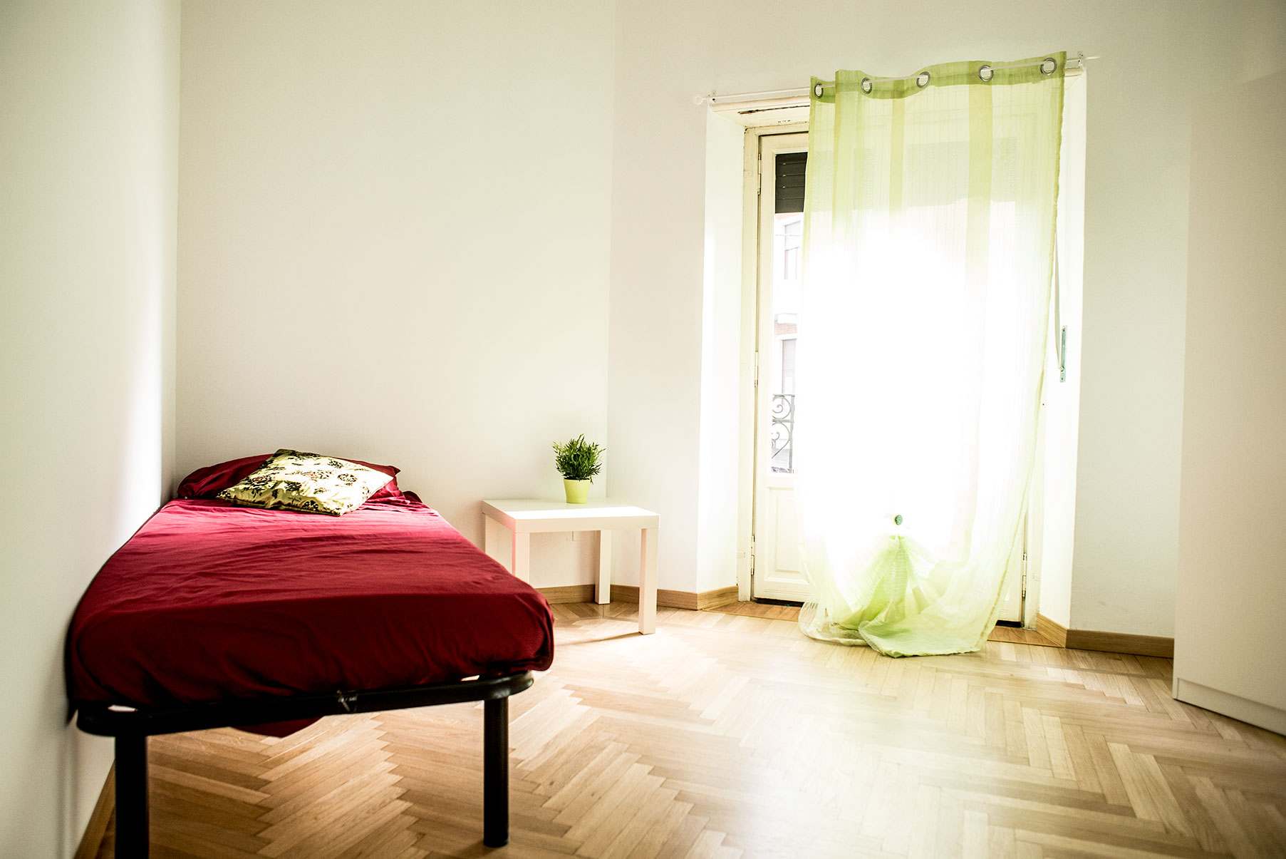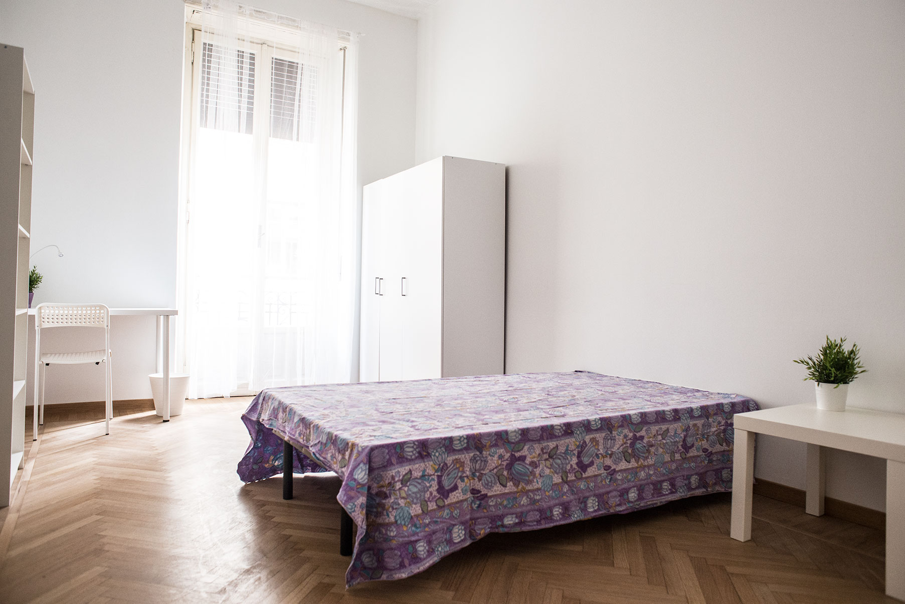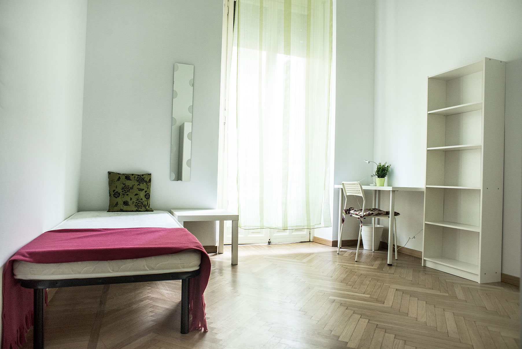 Camera singola arredata di recente con letto matrimoniale, armadio, scrivania, libreria. Molto ampia e luminosa con balcone privato. Il costo mensile è forfettario ed è comprensivo di tutte le spese: luce, gas, riscaldamento, internet, acqua, spese condominiali ed immondizia e pulizie delle aree comuni.