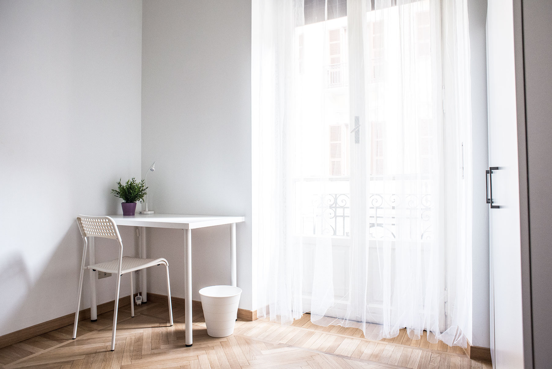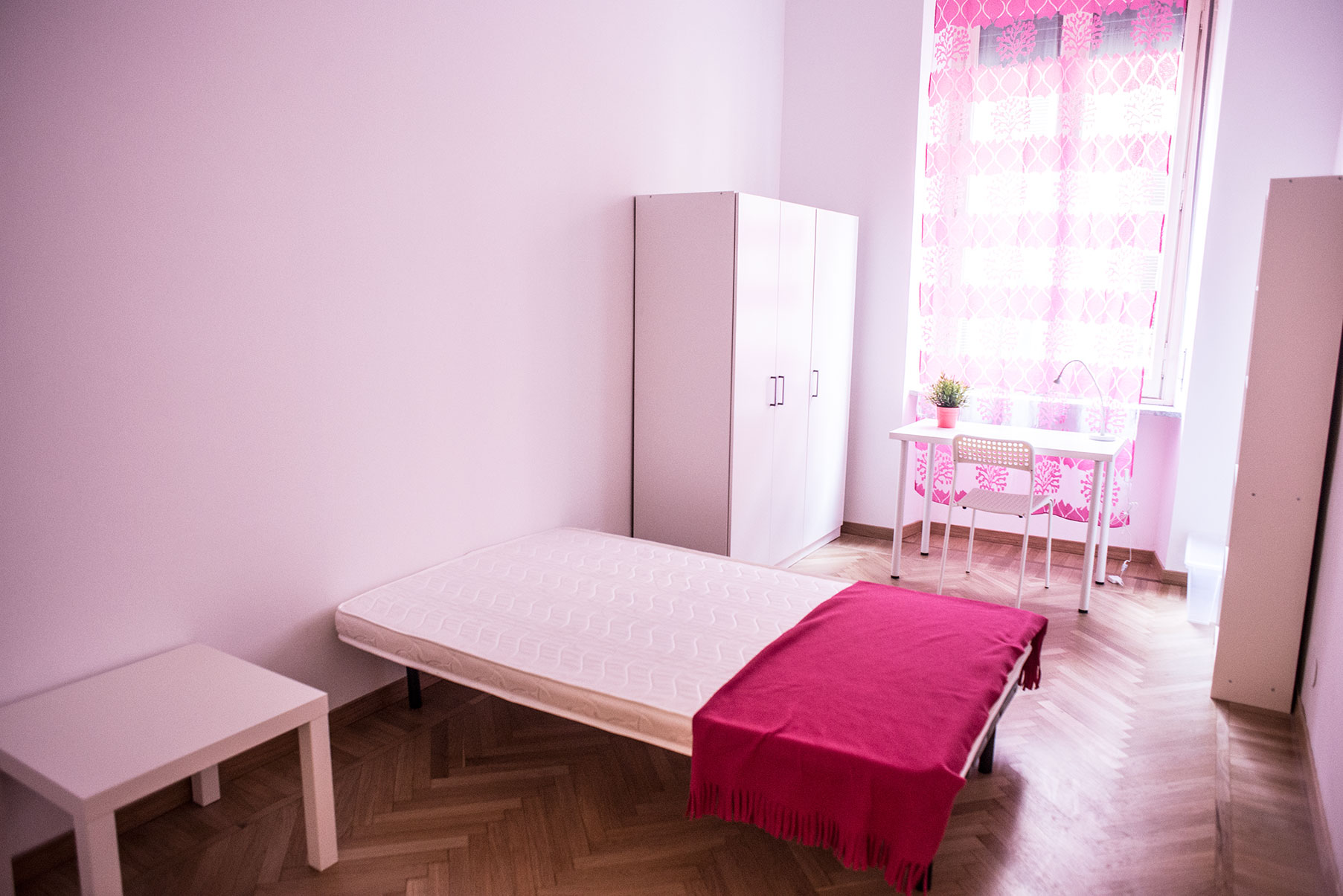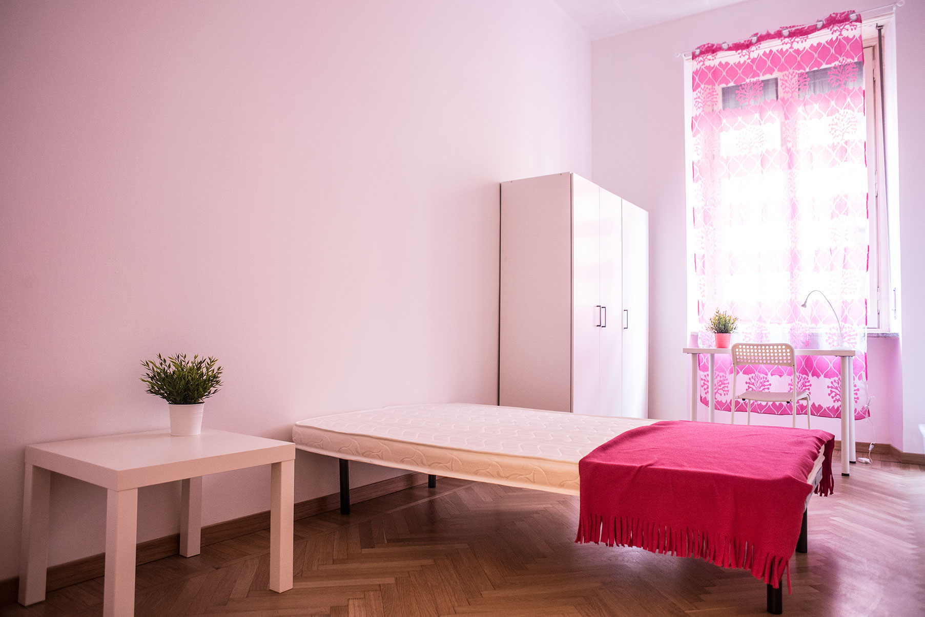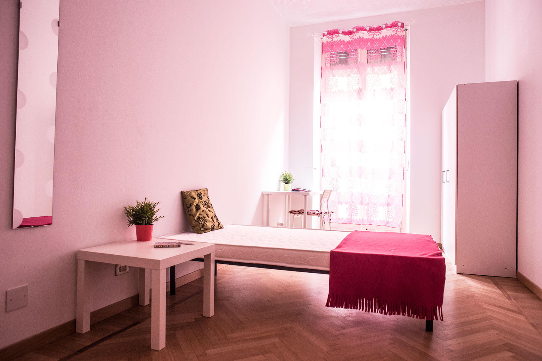 Camera singola arredata di recente con letto singolo, armadio, scrivania, libreria. Molto ampia e luminosa con balcone privato. Il costo mensile è forfettario ed è comprensivo di tutte le spese: luce, gas, riscaldamento, internet, acqua, spese condominiali ed immondizia e pulizie delle aree comuni.