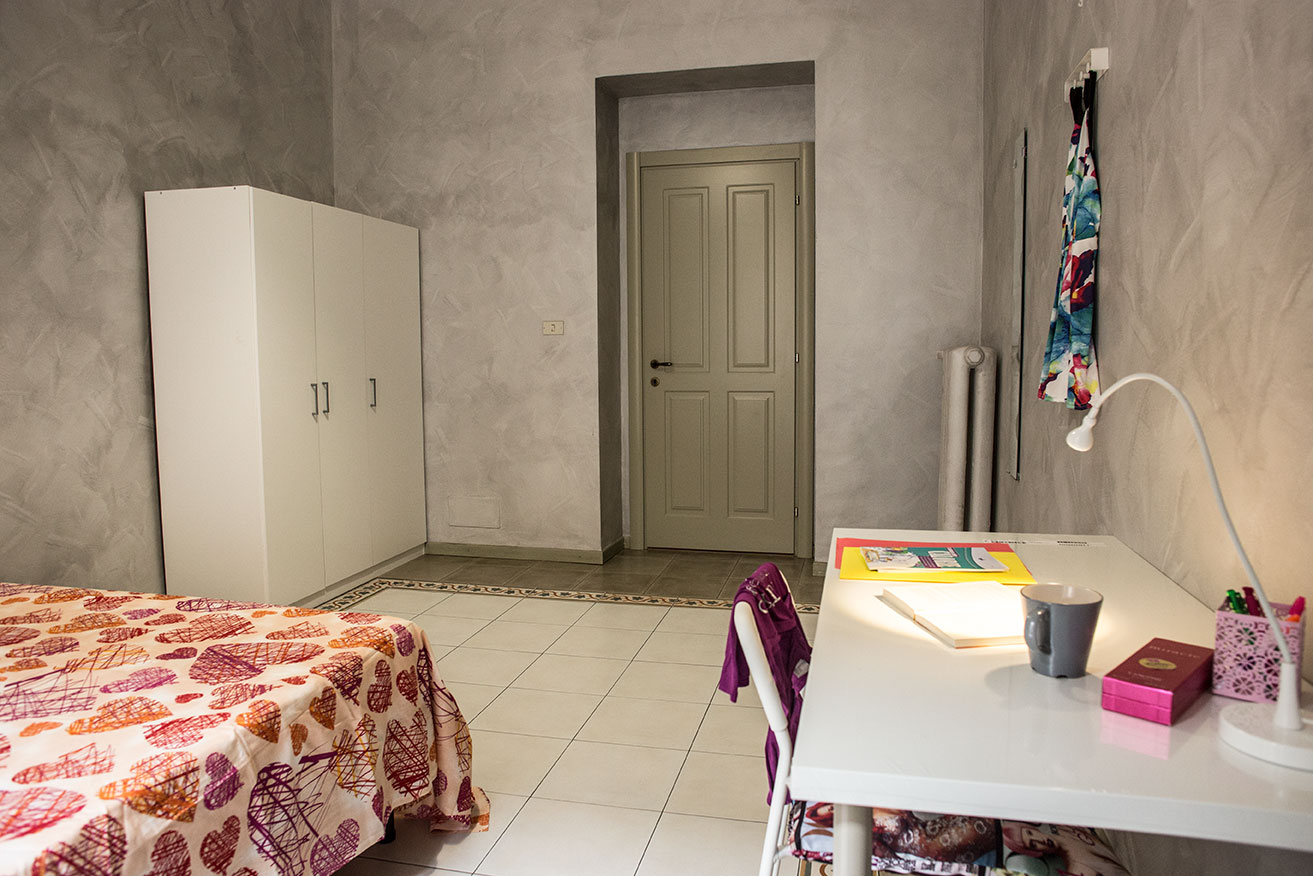 Grande camera singola arredata di recente con letto da 1 piazza e mezza, armadio, scrivania, libreria. Dotata di balcone e molto luminosa.