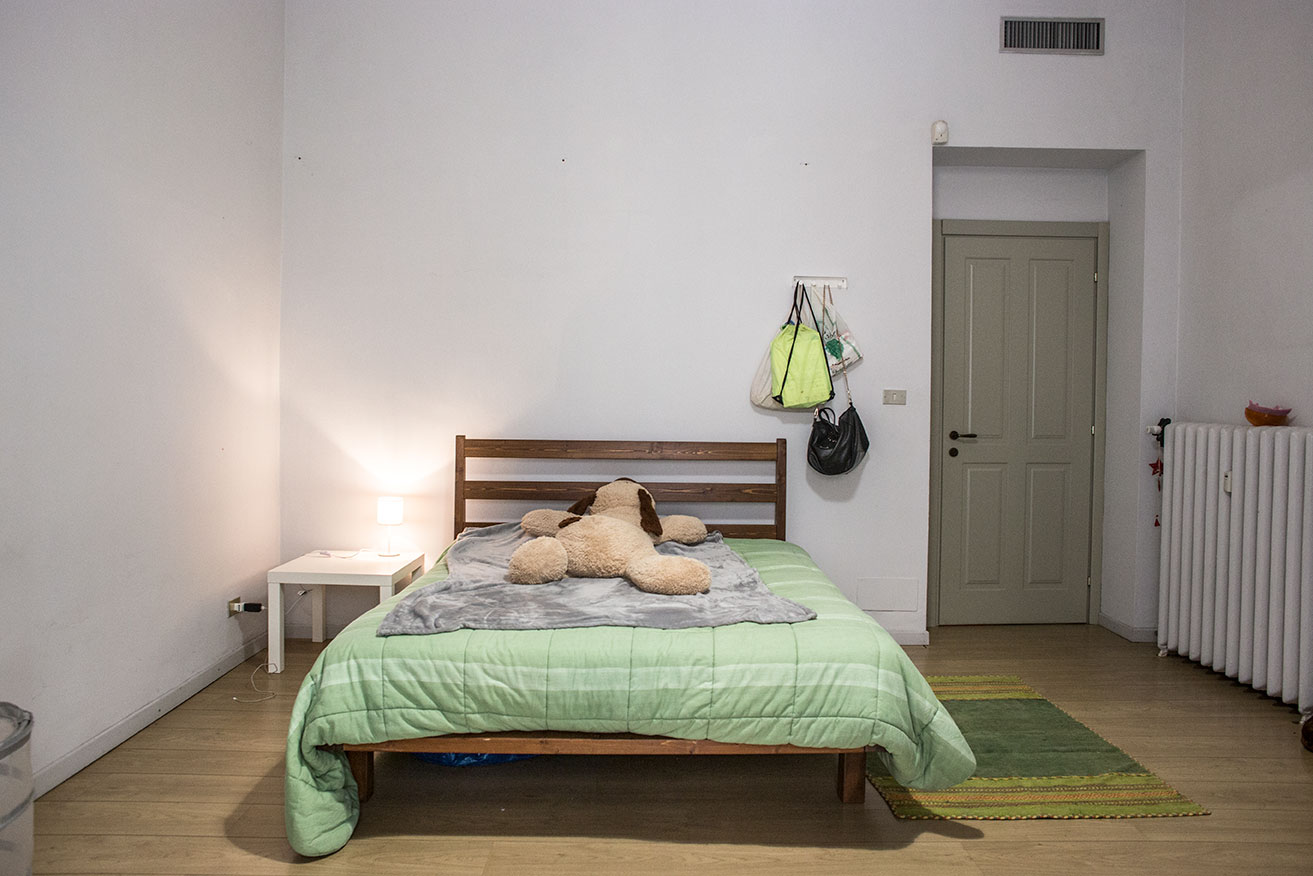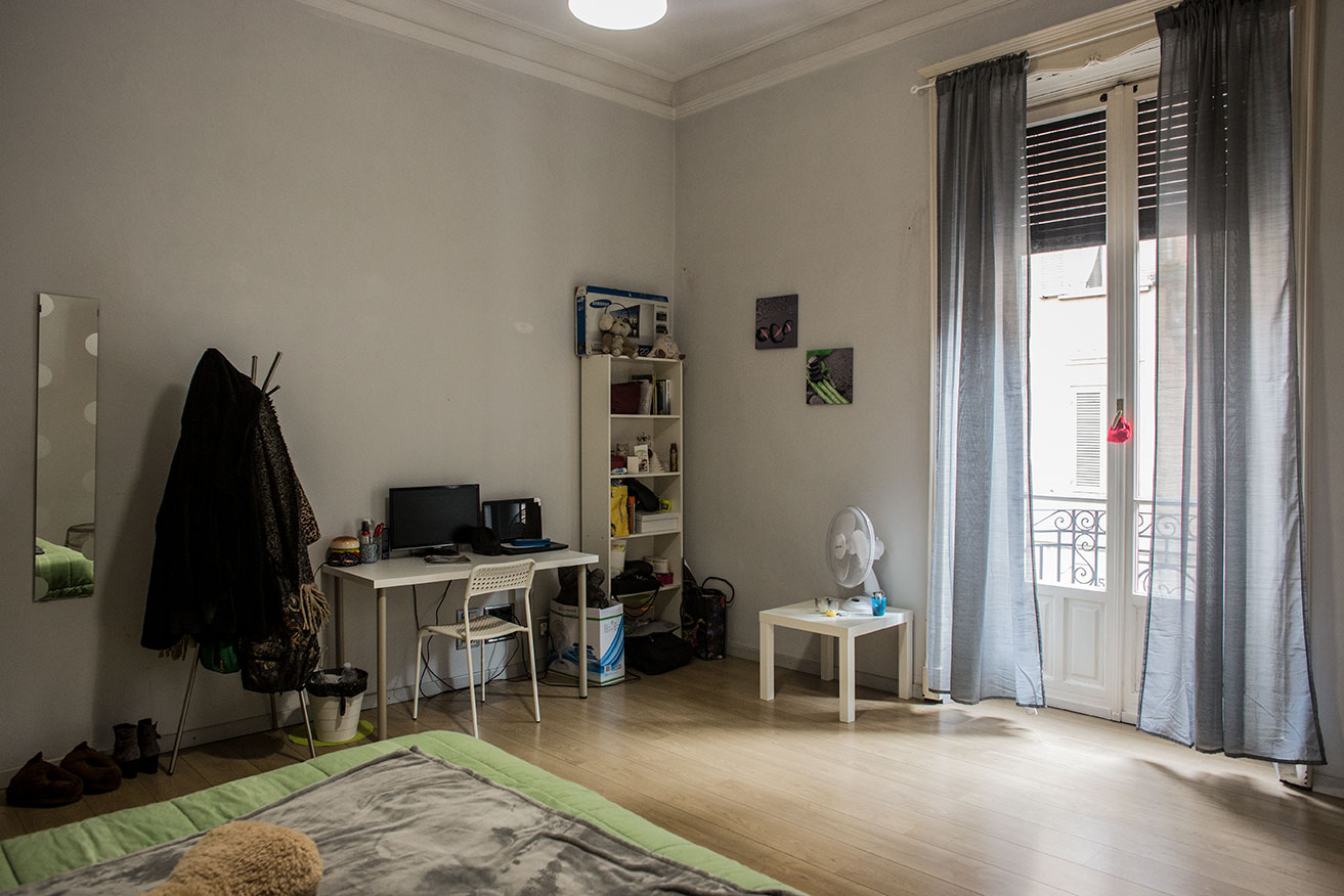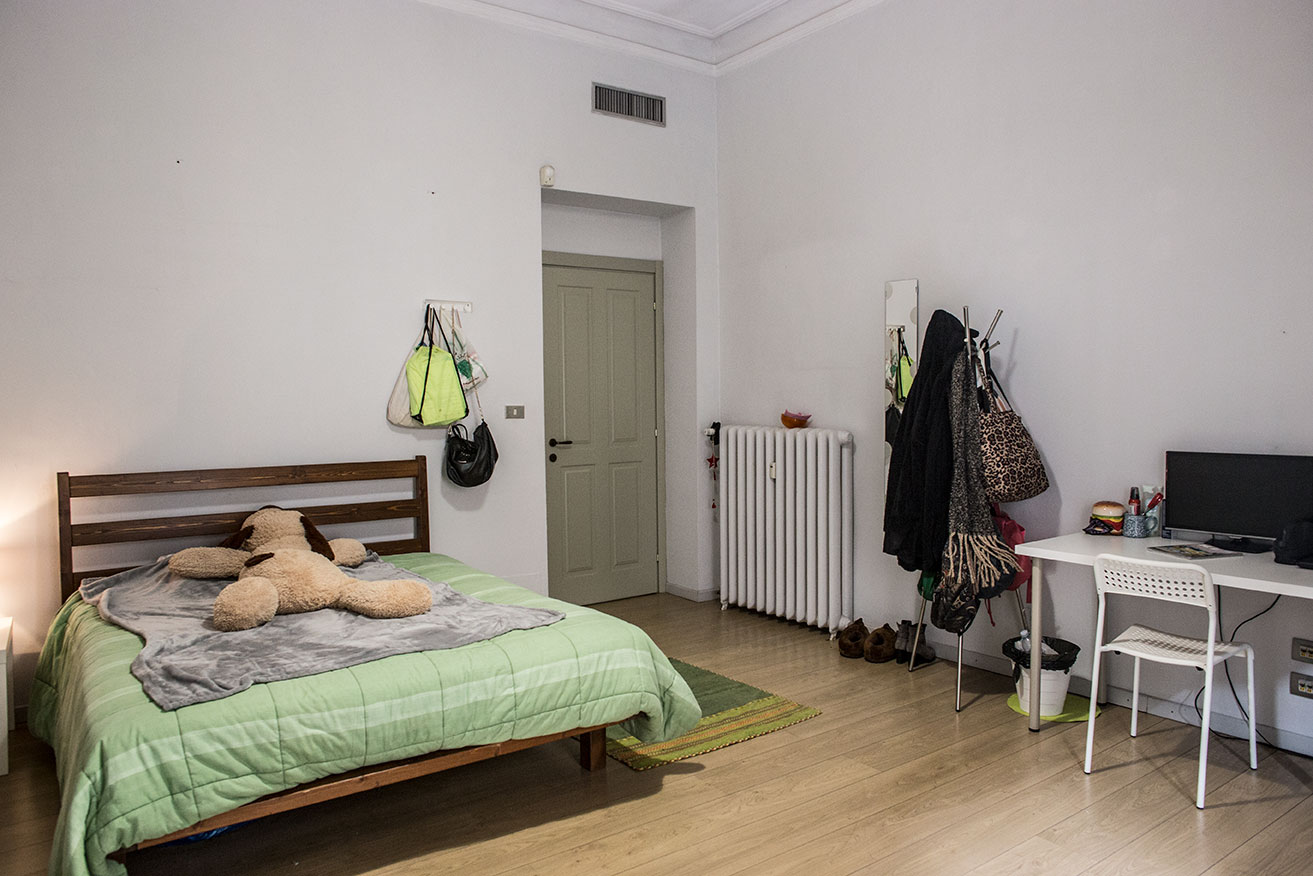 Grande camera singola arredata di recente con letto da piazza e mezza, armadio, scrivania, libreria. Dotata di balcone e molto luminosa.