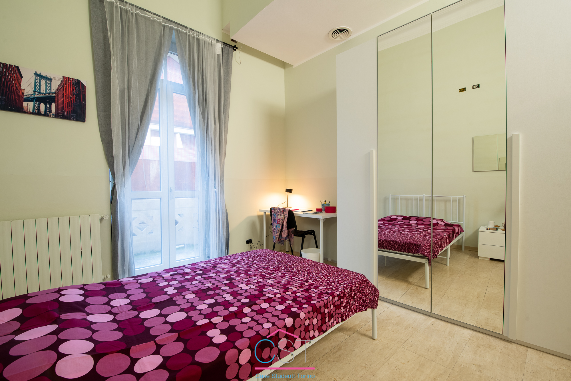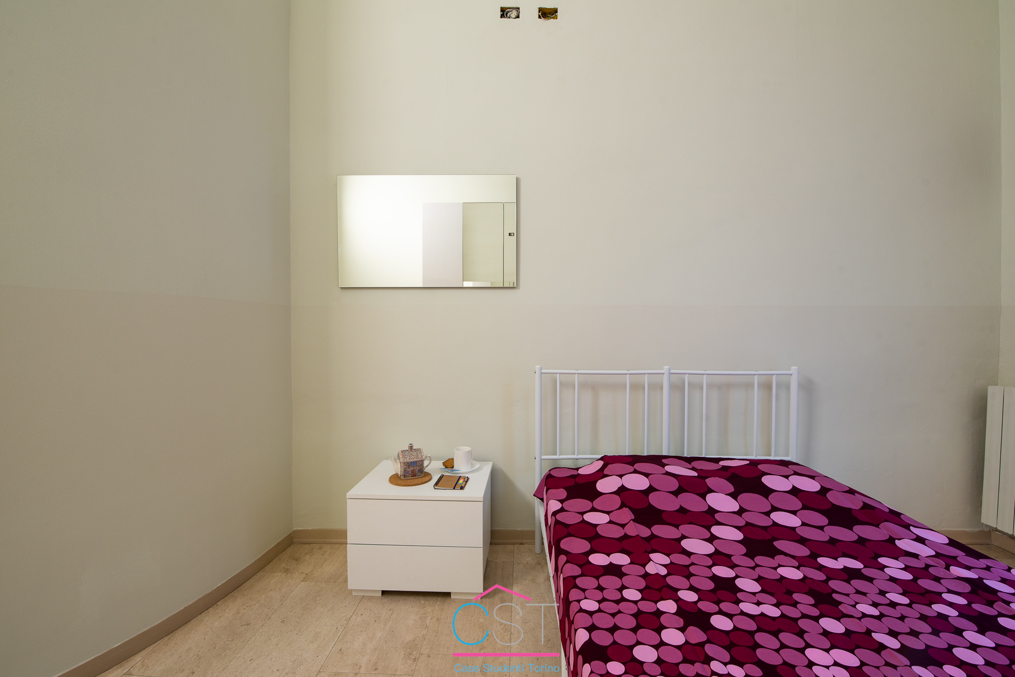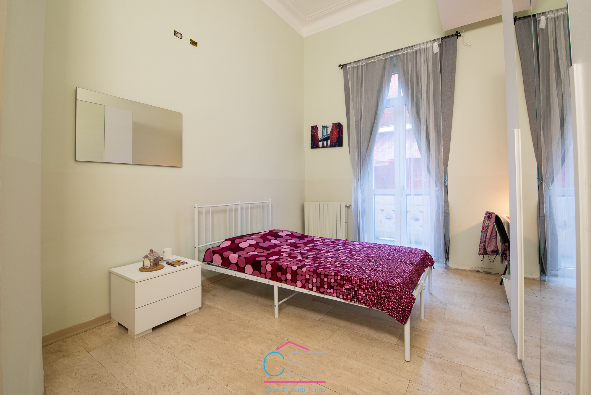 Bella singola luminosa e arredata con letto a 1 piazza e mezza, comodino, comò con specchiera, scrivania, sedia, armadio e stendino. La stanza ha balcone condiviso. Il costo mensile è forfettario ed è comprensivo di: luce, gas, riscaldamento, internet, spese condominiali, immondizia e pulizia settimanale degli spazi comuni.