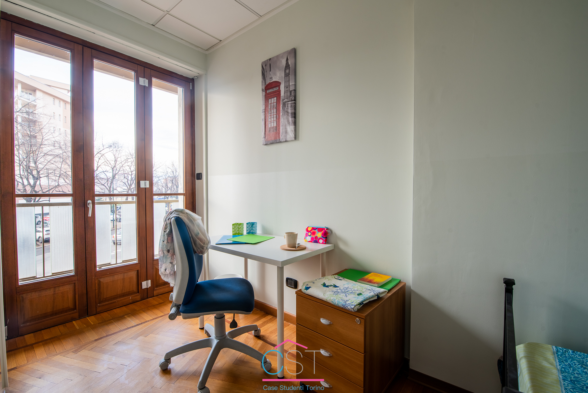 Graziosa singola arredata con letto singolo, scrivania, sedia, armadio e stendino. La stanza ha balcone privato. Il costo mensile è forfettario ed è comprensivo di: luce, gas, riscaldamento, internet, spese condominiali, immondizia e pulizia mensile degli spazi comuni.