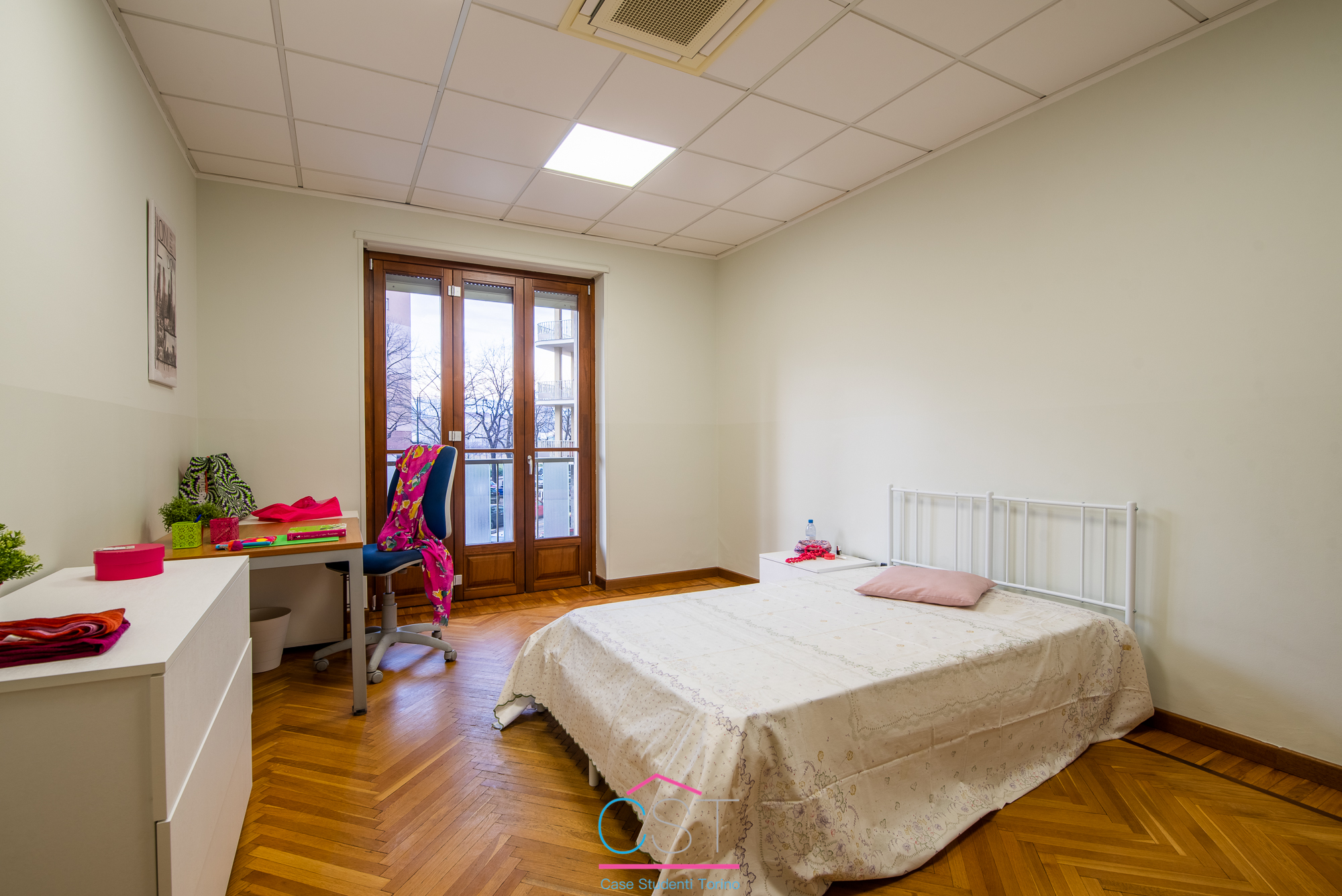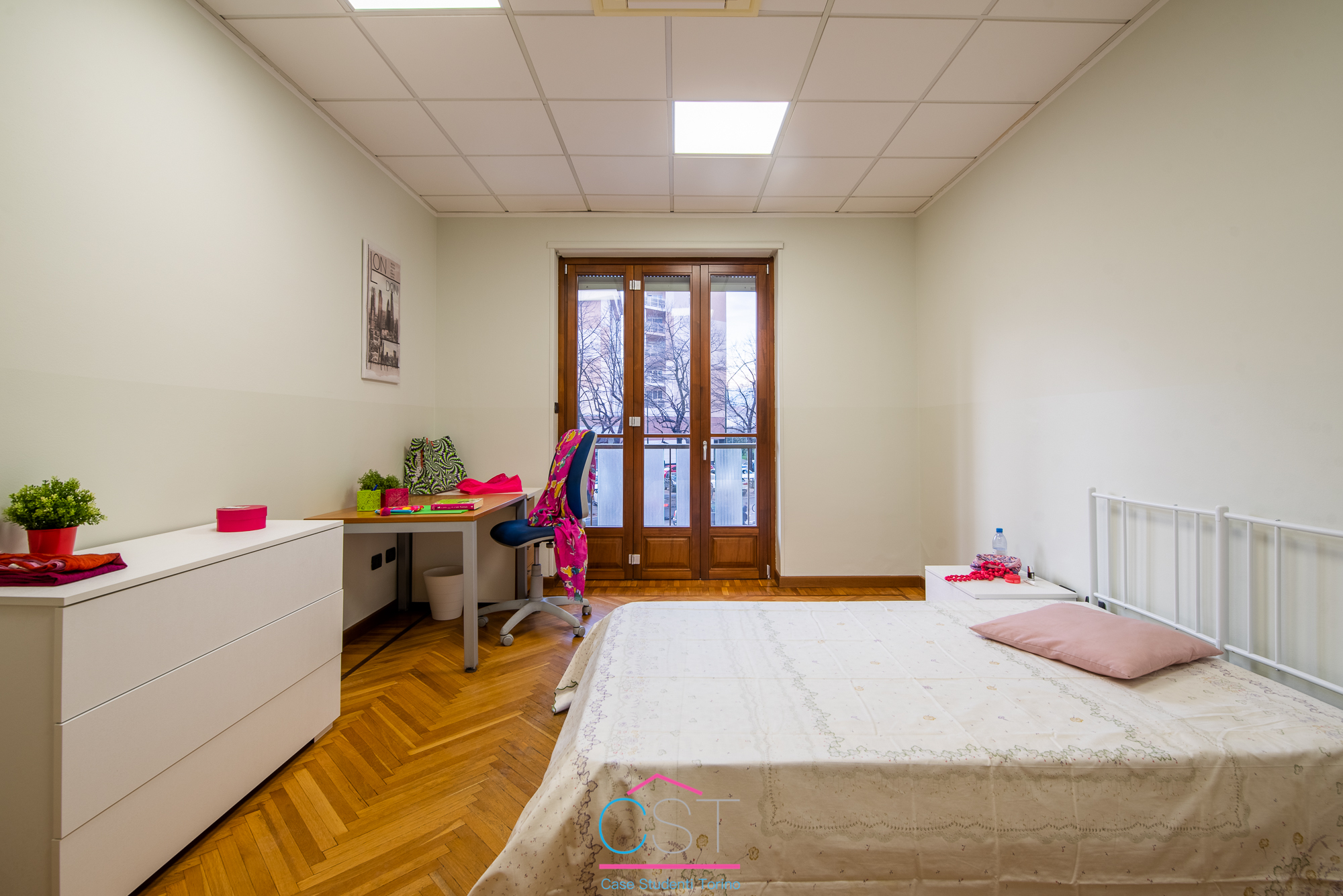Ampia singola arredata con letto a 1 piazza e mezza, comodino, comò, scrivania, sedia e stendino. La stanza è dotata di cabina armadio e balcone privato. Il costo mensile è forfettario ed è comprensivo di: luce, gas, riscaldamento, internet, spese condominiali, immondizia e pulizia mensile degli spazi comuni.
