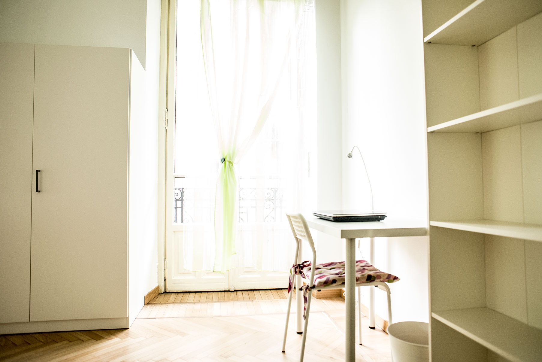Camera singola arredata di recente con letto da una piazza e mezza, armadio, scrivania, libreria. Molto ampia e luminosa con 2 balconcini.
