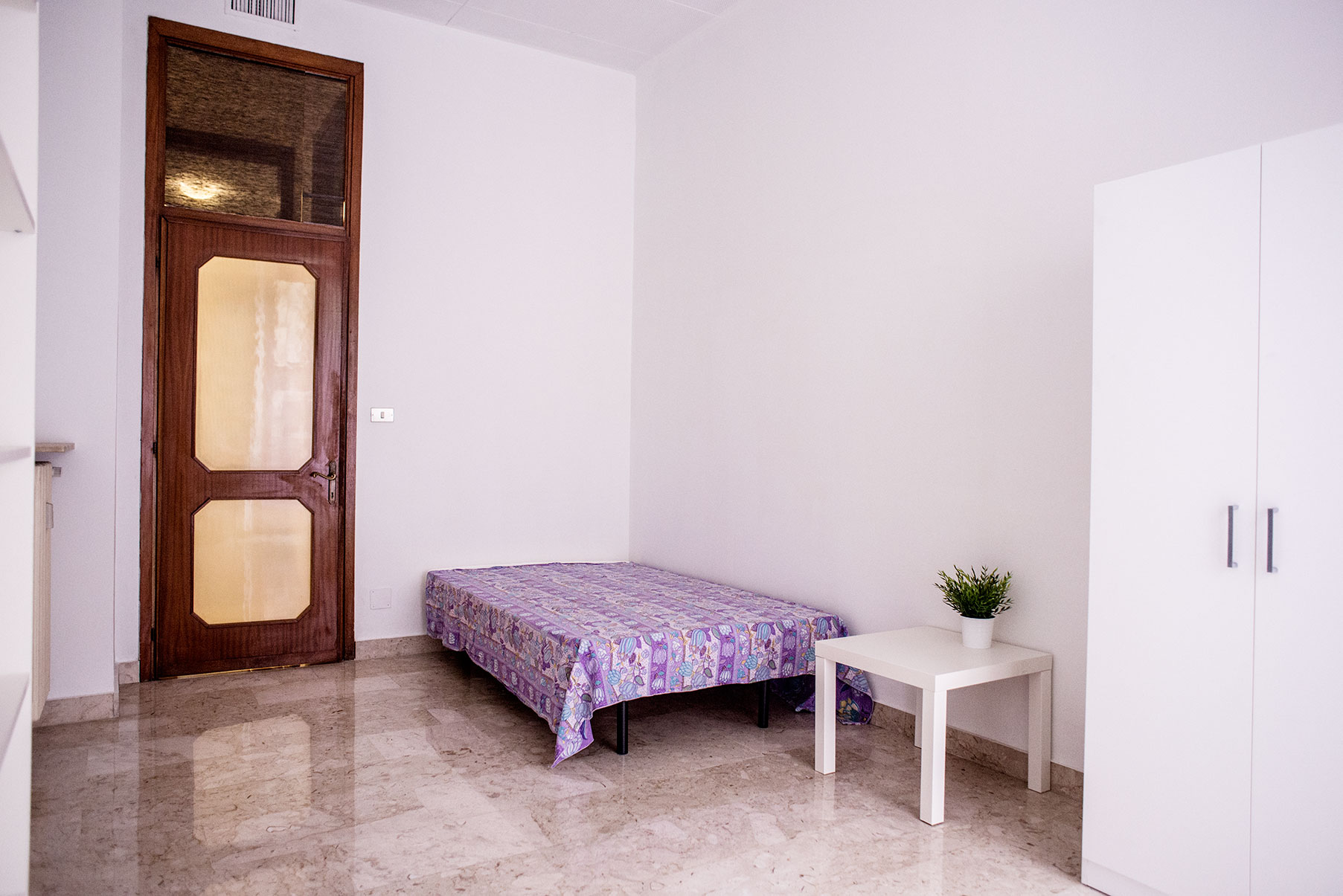 Camera singola arredata di recente con letto da piazza e mezza, armadio, scrivania, libreria. Molto ampia e luminosa con balcone privato. Il costo mensile è forfettario ed è comprensivo di tutte le spese: luce, gas, riscaldamento, internet, acqua, spese condominiali ed immondizia e pulizie delle aree comuni.