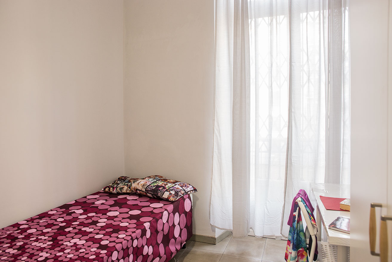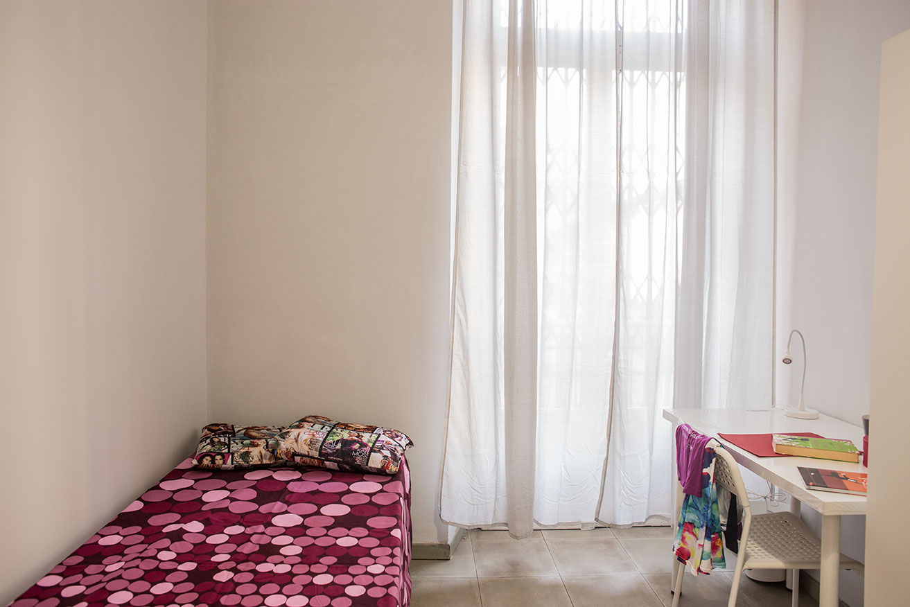 Camera singola arredata di recente con letto singolo, armadio, scrivania, libreria. Dotata di balcone e molto luminosa.