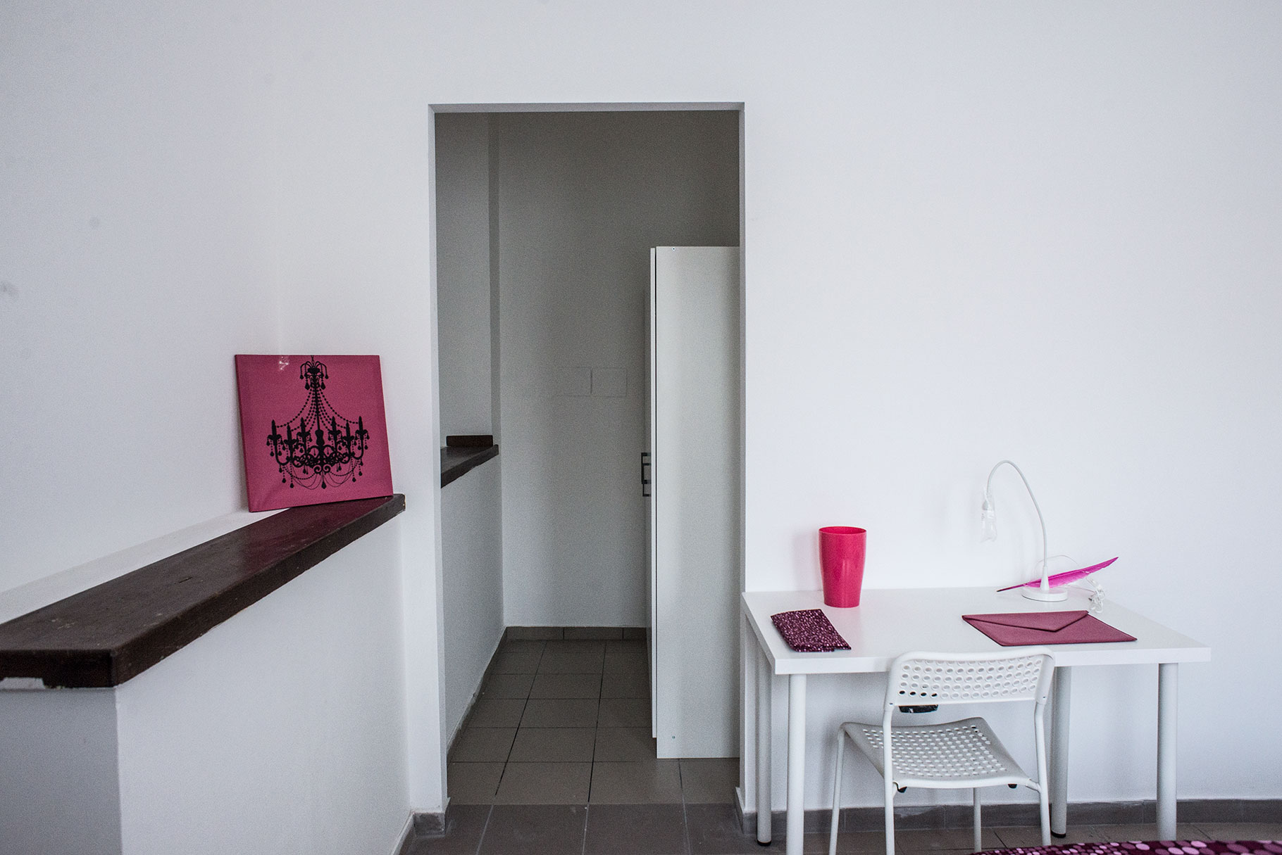 Singola luminosa e arredata con letto piazza e mezza, scrivania, ampia cabina armadio e sedia.